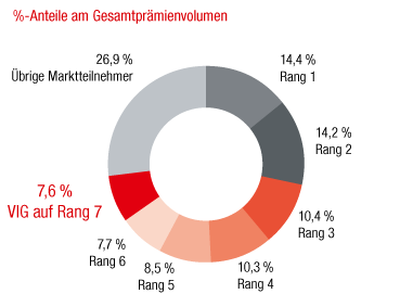 Die Top-5-Versicherungsgruppen erzielen rund 60% des Prämienvolumens. Die beiden größten Versicherungsgruppen trugen dazu rund 30% bei.